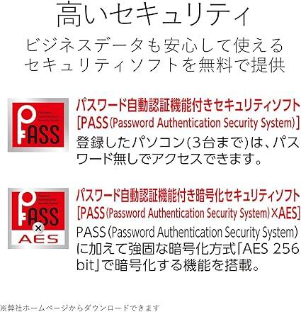 エレコム社Webサイトからダウンロードすることで、パスワード自動認証機能付暗号化セキュリティソフト「PASS(Password Authentication Security System) AES」あるいは「「PASS(Password Authentication Security System)」のみを使用可能です。