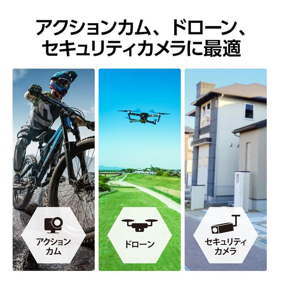 ■アクションカム、ドローン、セキュリティカメラでの使用に適しています。