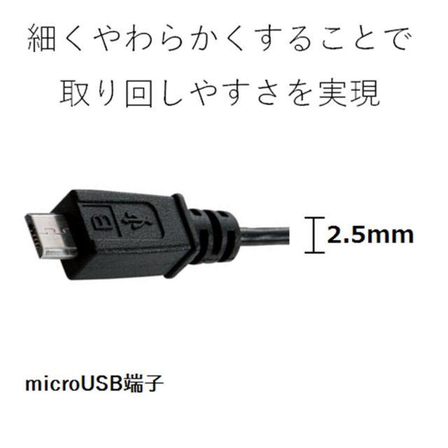 直径2.5mmと、細くてとりまわしの良い極細ケーブルを使用したMicro-USBケーブルです。