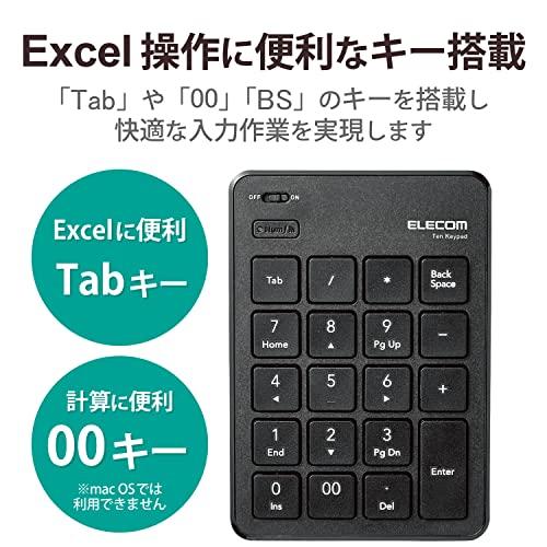 ELECOM Numeric Keypad with Bluetooth and Pantograph, Thin, Black, TK-TBP020BK