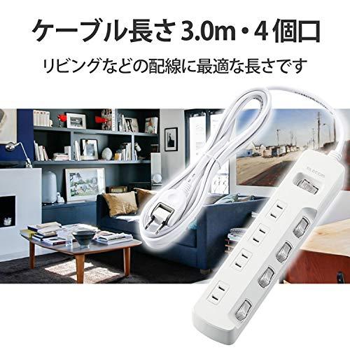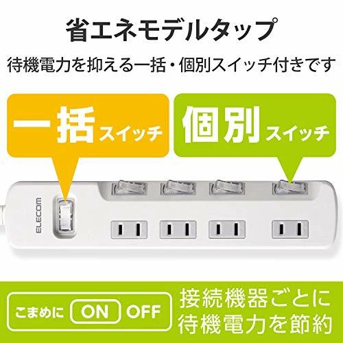 待機電力をまとめて節約できる一括スイッチと、接続機器ごとにON/OFFでき、個別に節約できる個別スイッチが付いた省エネタップです。