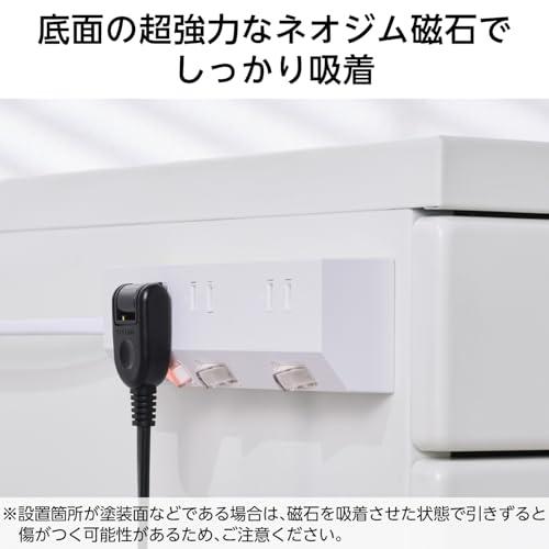 ELECOM Power Strip with Magnet, Switch, 2m, 3 Outlets, Dust Shutter, Lightning Guard, Swing-Type Plug, Heat-Resistant Material, White, T-IS01M-2320WH