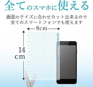 スマートフォンの液晶画面をキズや汚れから守る、フリーカットタイプの液晶保護フィルム。画面サイズにぴったり合わせてカットできるフリーカットタイプです。保護シートに方眼目を印刷しており、ぴったりとサイズを確認可能です。時間の経過とともに気泡が目立たなくなる特殊吸着層を採用したエアレスタイプです。小さな気泡ができたときには、指などで押し出すことで気泡を抜くことができます。指紋汚れを付きにくくする指紋防止コーティングを施しています。光の映り込みを抑え、チラつきを防止する反射防止仕様です。