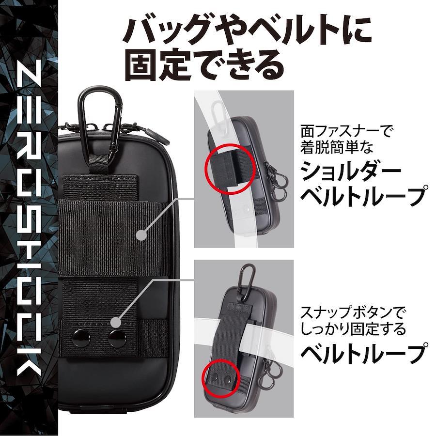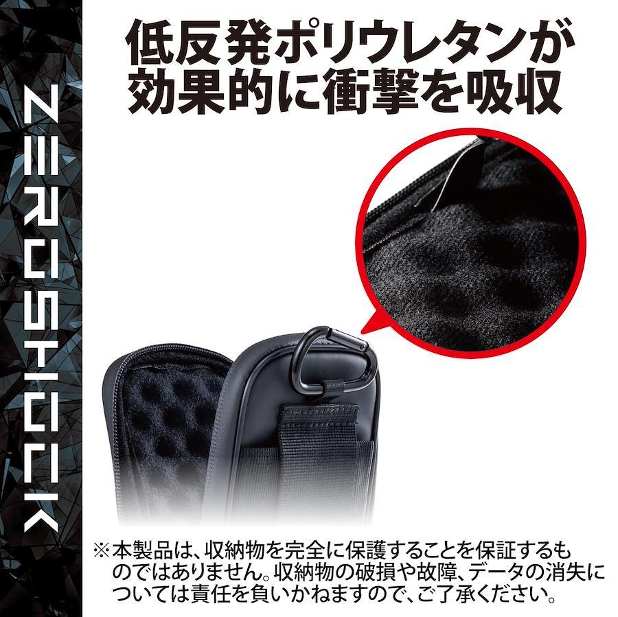 【 説明 】■ 抜群の衝撃吸収力を持つ“ZEROSHOCK"シリーズのスマートフォン用キャリングポーチです。■ 必要に応じてベルトループ、ショルダーベルトループ、カラビナフックの3つの装着方法を選ぶことができます。■ ウエーブ形状の低反発ポリウレタン(低反発ウエーブフォーム)が効果的に衝撃を吸収し、スマートフォンをしっかり保護します。■ 外部からの衝撃をしっかりと吸収する厚みを保ちながら、体積を少なくして軽量化を実現しています。■ ケース内側には中身を傷つけにくいベルベット調素材を使用しています。■ ケース表面に撥水性に優れた生地を使用しています。■ ファスナー生地部分からの水濡れを防ぐ止水ファスナーを採用しています。■ 開閉しやすいダブルファスナーを採用しています。