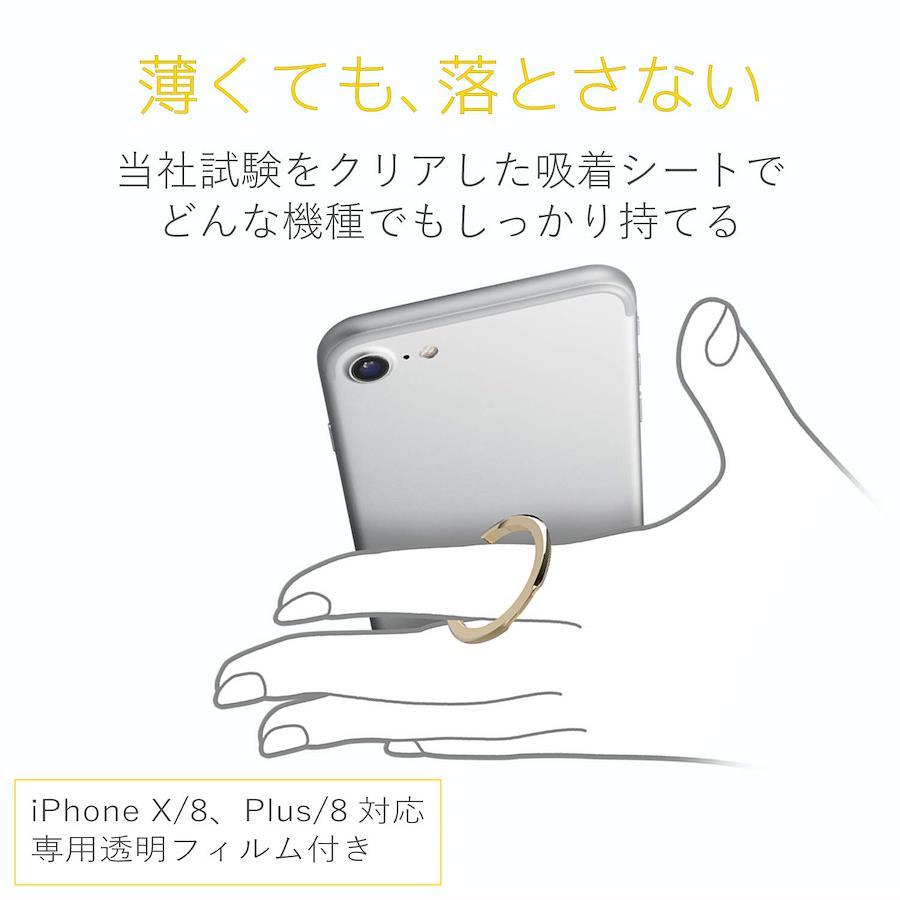 3営業日以内に発送≪新品未開封品≫:■背面に貼りつけることで指を通してスマートフォンを持つことができ、スマートフォンの落下を防ぐフィンガーリングです。 ■最薄部約2.5mmで、ポケットの出し入れなどでも邪魔にならない極薄設計です。※設計値(粘着シート含まず) ■持ち方に合わせてリングが回転し、持ちやすい角度に調整可能です。 ■動画視聴時にリング部分がスタンドになる、便利なスタンド機能がついています。 ■メーカー試験をクリアした吸着シートにより、使用中にスマートフォンから剥がれるのを防止します。