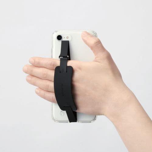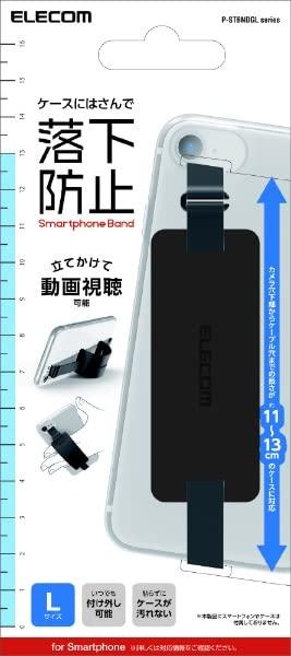 ケースと機器本体に挟み込んでスマートフォンの落下を防ぐ、薄くてかさばらずにワイヤレス充電にも対応するシリコン製のスマホバンドLサイズです。