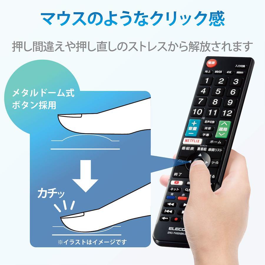 【 説明 】■ シャープ製テレビ アクオスに設定済みで、登録作業をすることなくそのまま使えるかんたんTV用リモコンです。■ 純正リモコンのボタン表示と配置を踏襲しており、分かりやすく、違和感なく使用可能です。■ Netflixなど最新のリモコンボタンに対応し、充実したボタン数を搭載しています。■ 関連するボタンを分かりやすくレイアウトし、直感的に操作可能です。■ 数字キーと十字キー、それぞれの背面にくぼみを設置し、どちらも押しやすいダブルホームポジション設計です。■ リモコン操作時に多い3つの使い方(つまんで操作、握って操作、置いたまま操作)に対応しています。■ チャンネルの操作など、リモコンをつまんで操作するときには、側面のくぼみに指を引っ掛けることができ、快適に操作可能です。■ 録画視聴の操作など、リモコンを握って操作するときには、背面のくぼみが人さし指にフィットしリモコンを支えることで快適に操作可能です。■ 音量調節など、リモコンを置いたまま操作するときも自然と指になじむボタン形状で、快適に操作可能です。■ ボタンには押し心地の良いメタルドームを採用し、ボタンを押したときに抜群のクリック感を実現しています。■ 手の小さな人でも操作しやすい長さ215mmサイズを採用しています。■ 広範囲で認