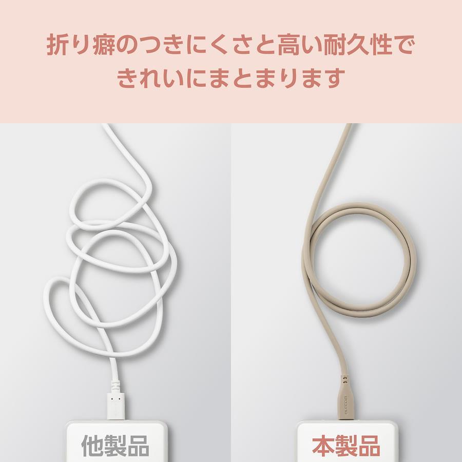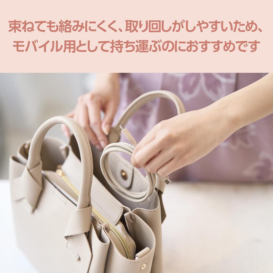 ■絡みにくく、取り回しがしやすいです。折り癖が付きにくく、モバイル用として束ねて持ち運ぶのに適しています。