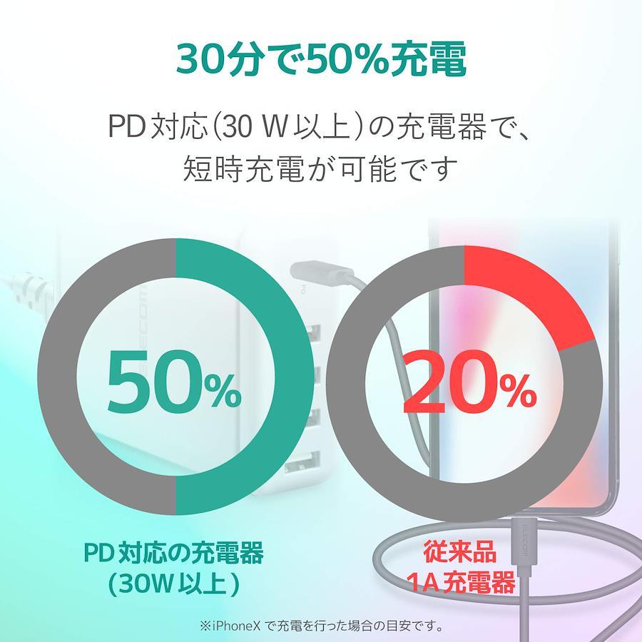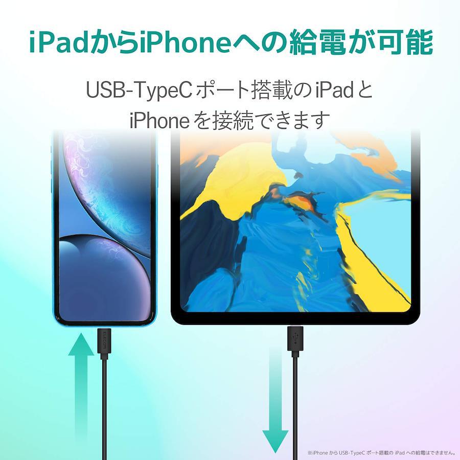 ■ その他:※iPhone8以降に発売されたUSB Power Delivery対応機種とUSB Power Delivery対応の充電器を使用した場合、高速充電が可能※iPadはUSB PD対応またはThunderbolt対応のUSB-C(TM)端子を持つパソコンの場合充電が可能※USB-C(TM)搭載iPadからLightning搭載端末への給電は可能