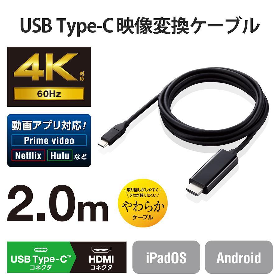 ELECOM USB-C HDMI Conversion Cable, 2m, Soft, 4K2K (3840 x 2160/60Hz), Mirroring Supported, Black, MPA-CHDMIY20BK