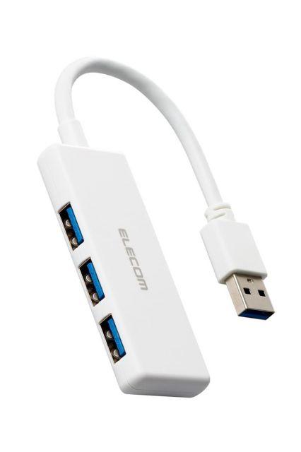 ELECOM USB Hub, USB 3.0, Bus Powered, 3 Ports, White, U3H-H030WH
