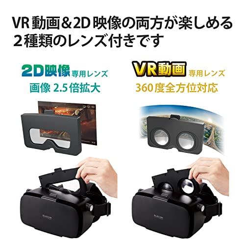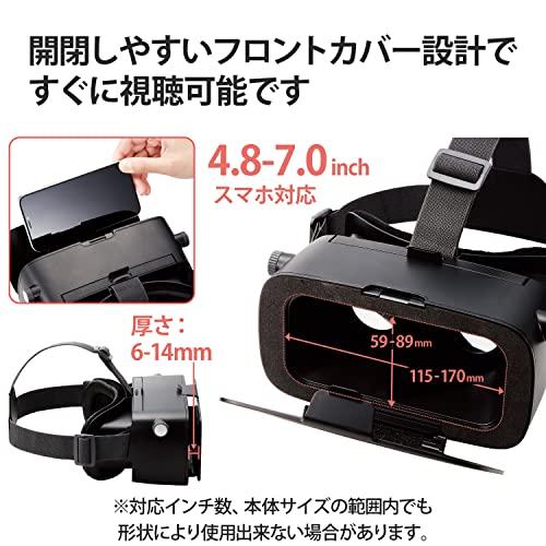 ELECOM VR Goggles for Smartphones, Glasses Compatible, Adjustable Eye Width and Focus, 4.8-7 Inch, Compatible with iPhone and Android, 2D/3D, Aspheric Optical Lenses, YouTube Videos, etc., Black (VRG-2D3D02BK)