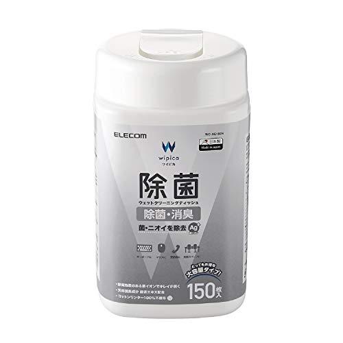 ELECOM Wet Wipes, Cleaner, Disinfectant, and Deodorizer, 150 Sheets, Ag+, Eliminates Bacteria and Odors, Made in Japan, WC-AG150N
