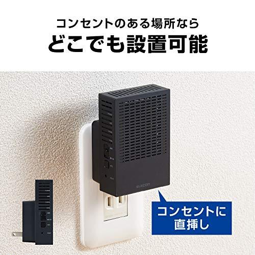 壁面コンセントに直挿しするスタイリッシュなデザインです。接続にケーブルを必要としないので、家の中の中継地点に簡単に設置できます。コンパクトに設計されたデザインなので、一般的な2口コンセントの上側に差しても下側のコンセント口をふさぎません。