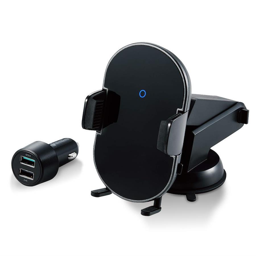 Qiに対応したスマートフォンを挟むだけで車で充電ができる、Qi規格対応ワイヤレス充電式車載ホルダーです。