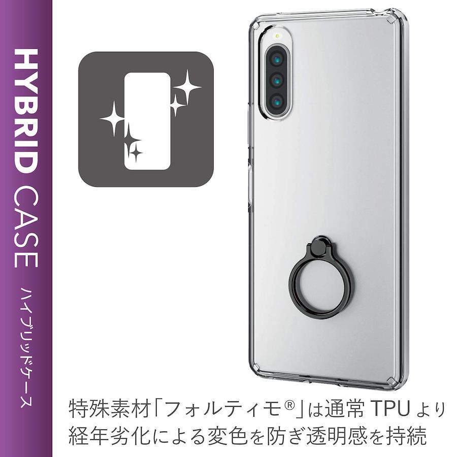 ■ ポリカーボネートと高弾性・無黄変性に優れた三井化学(株)製「フォルティモ(R)/TPU(熱可塑性ポリウレタン)」、2つの素材を使用したXperia 10 II用リング付耐衝撃ハイブリッドケースです。