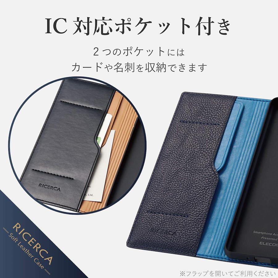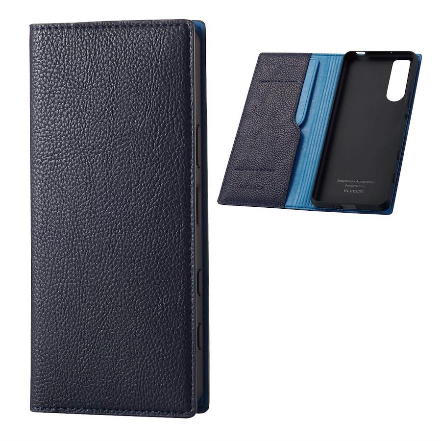 ジャケットに美しく収まるよう、スマートにデザインされたXperia 5 II用ソフトレザーケース(手帳型)です。