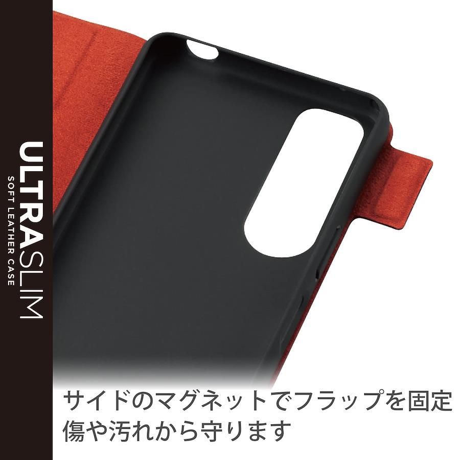 本体の薄さ、軽さを損ねない薄型・超軽量なウルトラスリムタイプのXperia 5 III(SO-53B/SOG05)用ソフトレザーケース(手帳型)です。