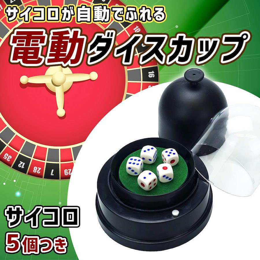 ボタンを押すだけでサイコロを振ることができる電動ダイスカップです。 透明ドーム部分は取り外しが可能なので、用途に応じてサイコロの数を変えてお使い頂けます。ケース内でサイコロがシャッフルされるので、サイコロを勢い良く振ったら紛失してしまった…なんてこともありません。 小型で軽量なので、持ち運びもラクラク♪マジックやボードゲームなどのプレイを盛り上げるプラスアイテムとしてもおすすめです!※電池入れ部分が固い設計になっているので、付け外しの際に指を挟まないようお気をつけください。 【セット内容】電動ダイスカップ×1点 サイコロ×5点 【サイズ(約)】直径10.5cm×11.cm 【必要電池】単三電池×2個 ※電池は付属していません。 ※当商品は【kendyショップ】のオリジナルブランド商品となります。【kendyショップ】以外からご購入の場合、商品の仕様が異なる為ご注意下さい。 JAN:【4570029838282】