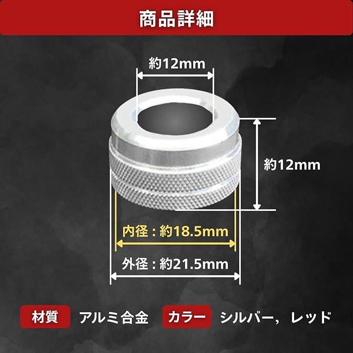 「サイズ(約)」外径高さ:12mm 外径直径:21.5mm 内径直径:18.5mm 上部内径:12mm 愛車のサイズをご確認いただきご購入ください。