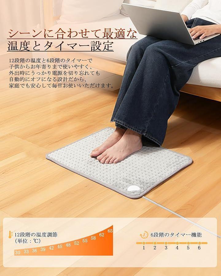 「12段階温度&6段階タイマー」電気ホットマットは12段階温度調節により、秋の少し寒い日から真冬、早春まで長く使える柔軟性が魅力。