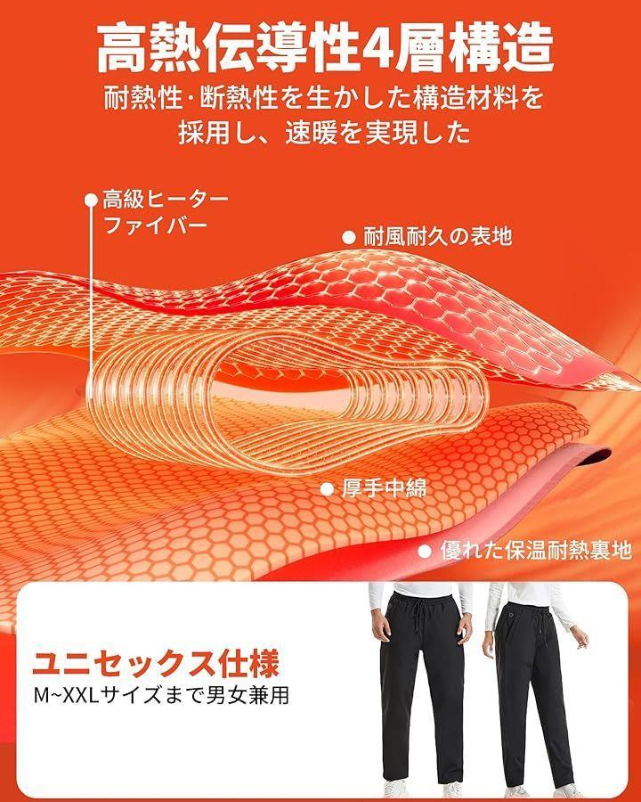 広い発熱エリアではなく、必要な部分に効かせる合理的な設計で、冬のアウトドアや長時間の屋内作業でも、腰回りの冷えやひざの寒さを効果的に解消。