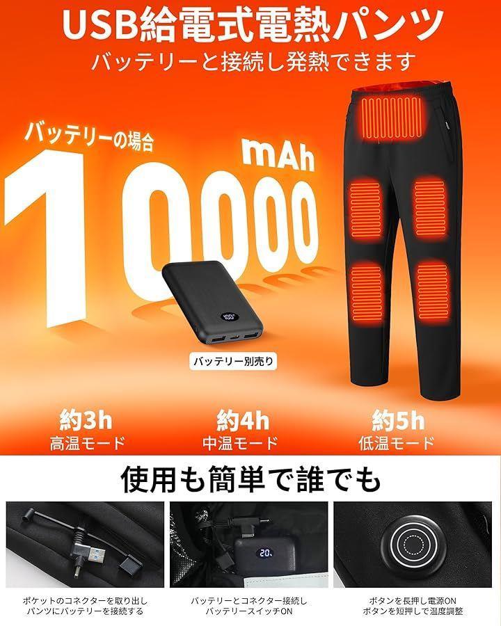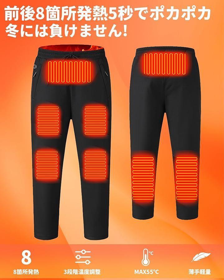 Electric Heated Pants with Heater, Unisex, 8 Heat Points, Ultra-Fast Warmth, 3 Temperature Settings, DC/USB Powered, Batteries Sold Separately, Lightweight, Winter Warmth, Work & Outdoor Use