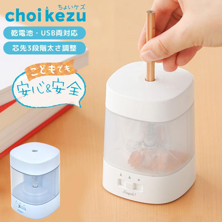 【ちょいケズ 電動鉛筆削り】机の上で邪魔にならない、小さめサイズが嬉しい♪手のひらサイズの『ちょいケズ』電動鉛筆削りが新登場!3段階の芯先調整や誤作動を防ぐ安全設計、高耐久刃などコンパクトでもしっかり高性能!乾電池とUSB給電の両対応で、据え置きでも持ち運んでも使えます。