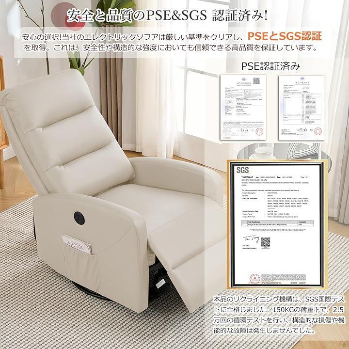 「前後10度スイング機能 - リラクゼーションの新次元」スイングシステムを搭載した電動ソファは、前後10度の優雅な揺れを実現。