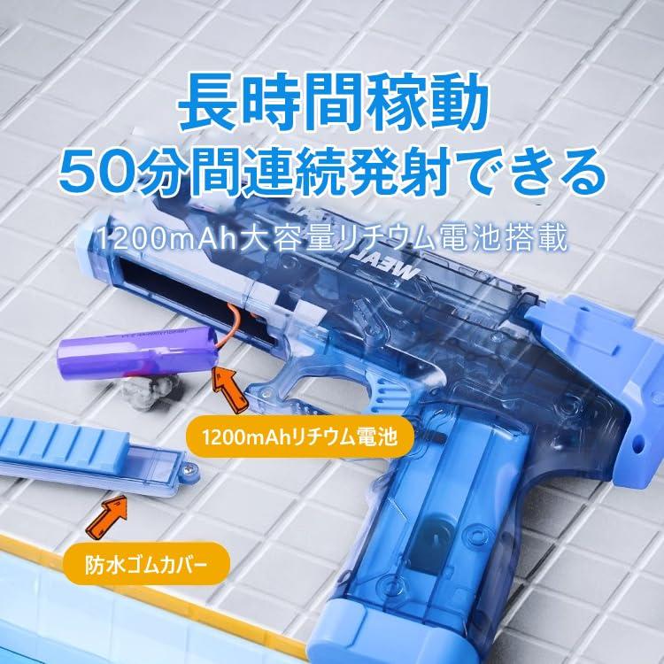 子供や大人と一緒にこの水ピストルを楽しんでください。 このウォーターガンは4色があり、水上バトルで異なる陣営を見分けやすくなっています。水遊び、庭やプール/海水浴/夏祭バーベキューなどで楽しめます、また大人もパーティー等でもこのデザインならどこでもなんでも楽しめますよ。 【高速連射&パワフルパワー】トリガーを引くたびに、強力な個別のウォーター ジェットが放出されます。満電状態での射撃距離は10mを超える。 【USB充電&超強力バッテリー】 60 分間の超長時間バッテリー寿命、および 1 つのバッテリー充電時間は 100 分です。一回フル充電で約50回クリップ使用可能。 【高品質の材料&水漏れがしない】水のおもちゃは高品質のABS製で、耐久性があり、気密性が高く、水漏れ防止も抜群です!ハンドルには滑り止めが付いています。 【夏の定番水遊びおもちゃ】子供や大人と一緒にこの水ピストルを楽しんでください。 このウォーターガンは4色があり、水上バトルで異なる陣営を見分けやすくなっています。水遊び、庭やプール/海水浴/夏祭バーベキューなどで楽しめます、また大人もパーティー等でもこのデザインならどこでもなんでも楽しめますよ。 【注意】水鉄砲の中に空気抵抗があるため、クリップの中の水は空気抵抗の影響を受けて射出できなくて、噴出したのは霧で、これは物理学の空気抵抗の原因によるもので、正常な現象に属して、具体的に水鉄砲やクリップの中に水が満ちていない場合、水鉄砲を水に浸して射撃して、音が小さくなるまで何度も繰り返して、音が小さくなるまで正常に回復して、このようにする目的は、水鉄砲の中が水だらけで空気がないようにすることです(テスト時には水鉄砲クリップに必ず水を満たすように注意する必要があります)