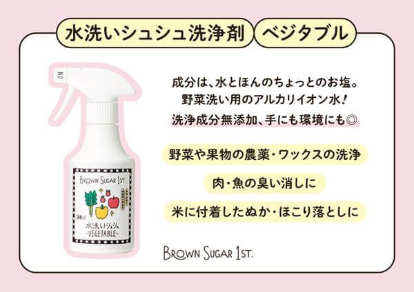 ブラウンシュガーファースト水洗いシュシュ-VEGETABLE-は、石油・アルコールフリー!特許取得&実証実験をクリアした電解質のお水シリーズです。