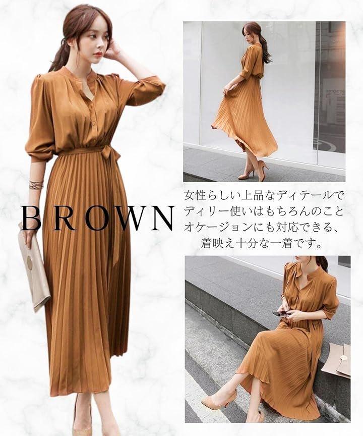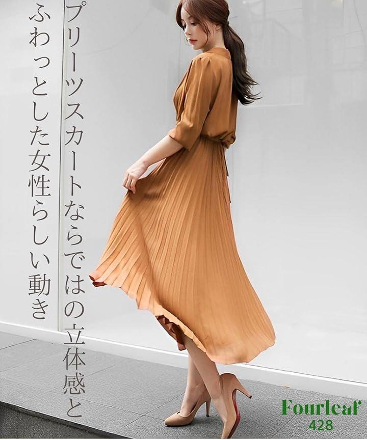 ふんわり揺れるプリーツのミモレ丈スカートが華やかさを演出してくれるさらっと着られるウエストリボンプリーツシャツワンピース。