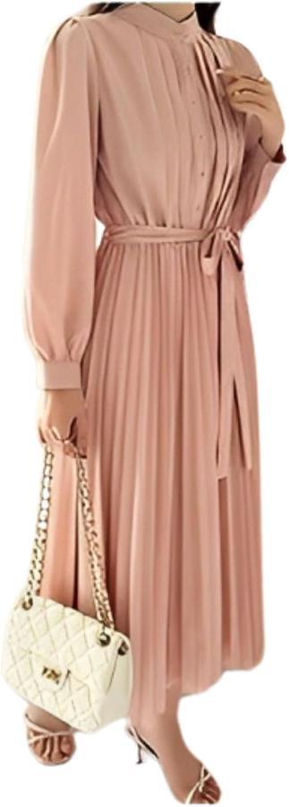 ふんわり揺れるプリーツのミモレ丈スカートが華やかさを演出してくれるさらっと着られるウエストリボンプリーツシャツワンピース。