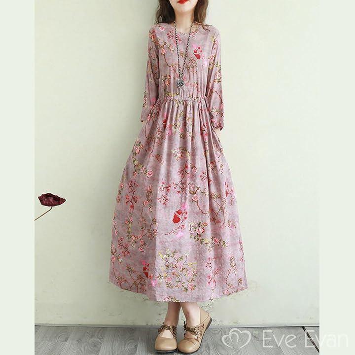 「1枚でコーディネート完成」レトロな花柄が目を引く美しいナチュラル系ワンピース。