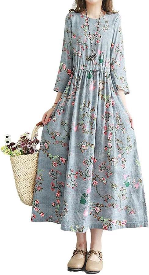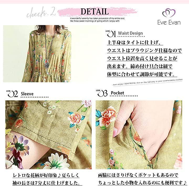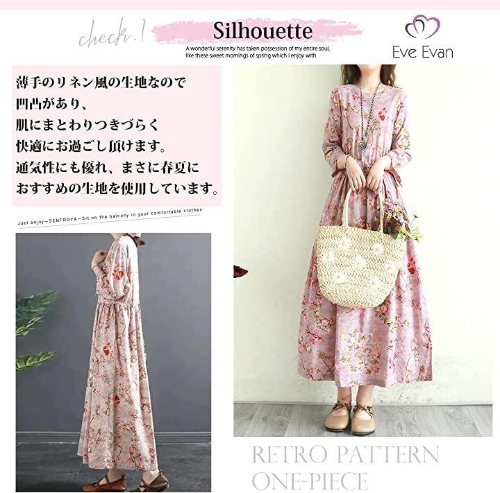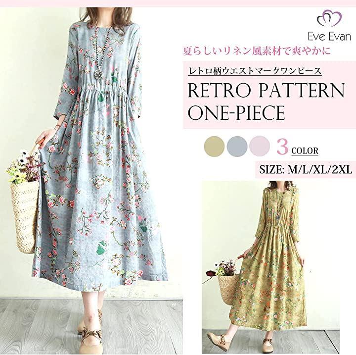 レトロな花柄が好印象*夏らしく袖の長さは7分丈にしつつも、裾は大胆なマキシ丈に仕上げました。