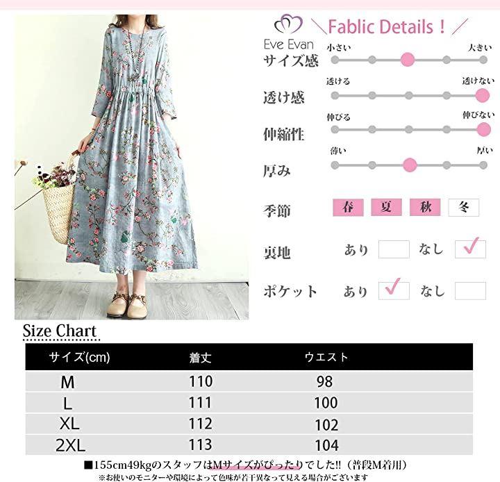 ワンピースはフリーサイズなところも多いですが、このワンピースはM~2XLの4サイズをご用意致しました。