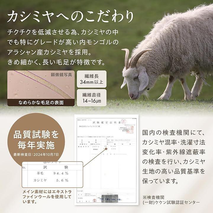 「こだわりの柔らかさ」ウールの中でも繊維直径が細くやわらかい上質なエクストラファインウールにカシミヤの中でも極上のアラシャン産のカシミヤをブレンドすることで首へのチクチク感を低減させ、ふんわりとしたやわらかさが特徴のマフラーです