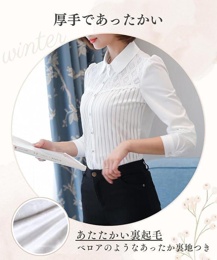 「冬のあったかシャツブラウス」見た目すっきり、着るとあったか、秋冬に大活躍するレディースのボタンシャツブラウスです。