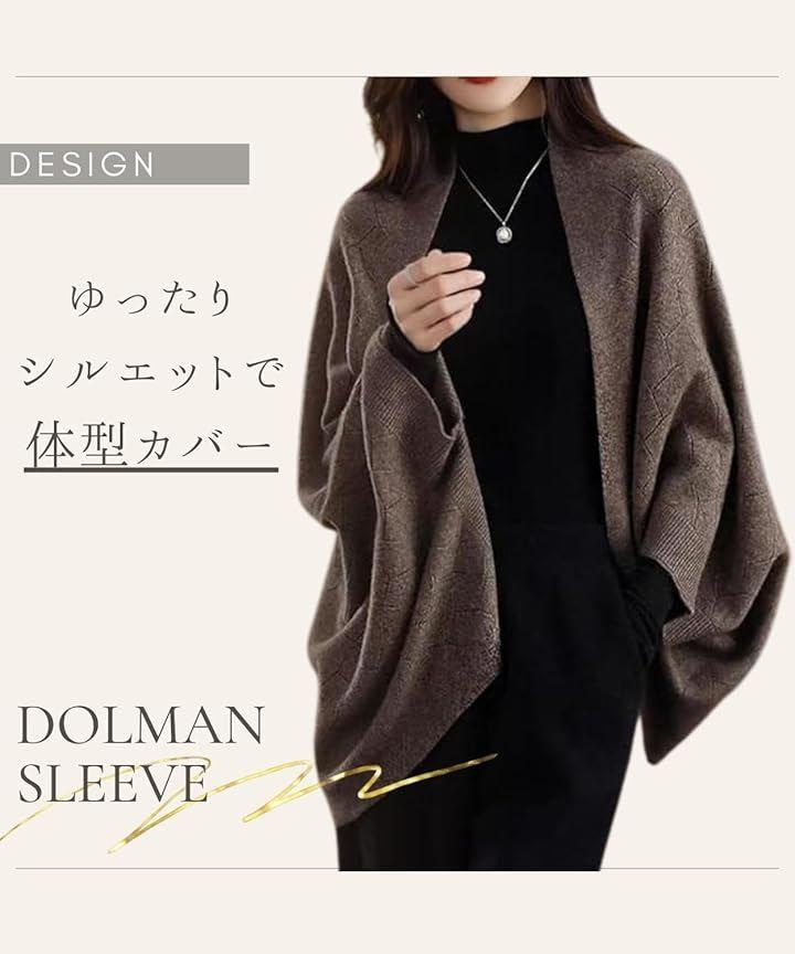 「体型カバー」 ゆったりシルエットのドルマン袖で、おしりまで隠れるので、体型を気にせず着用することができます。