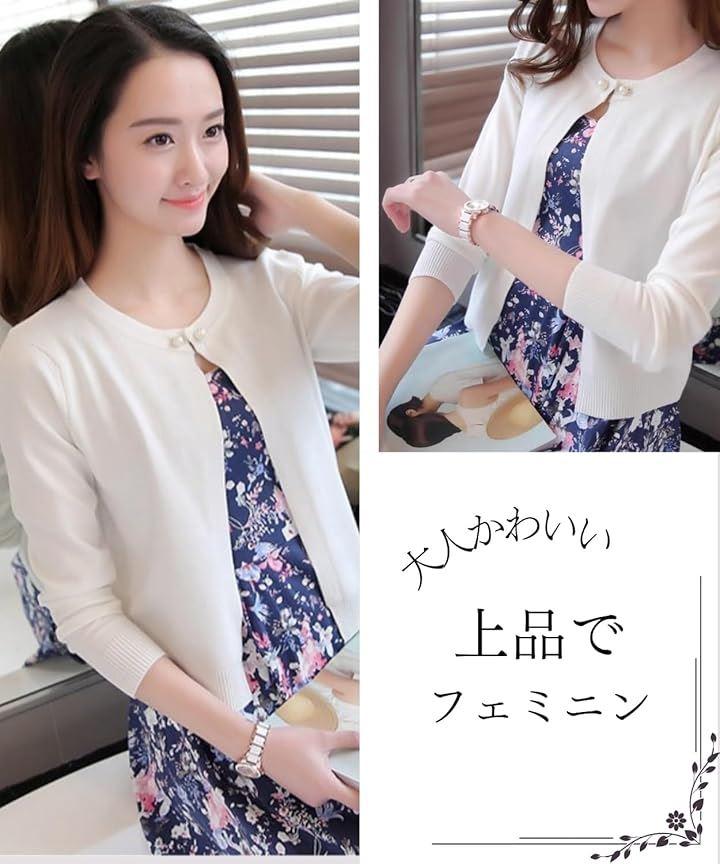 「シンプルで上品なデザイン」シンプルでありながら、パールボタンがアクセントとなり、清楚で大人かわいいスタイルを実現します。