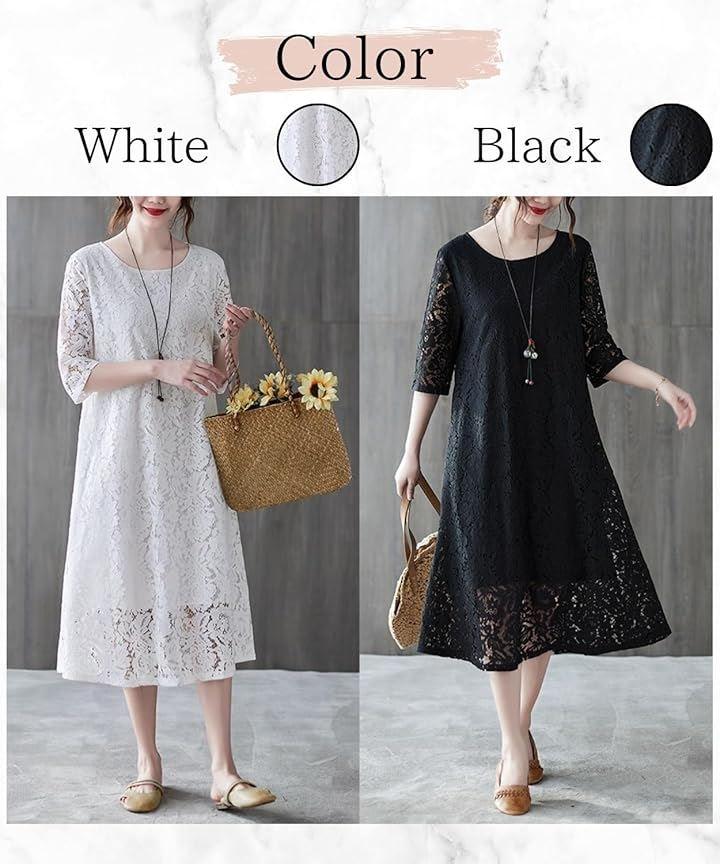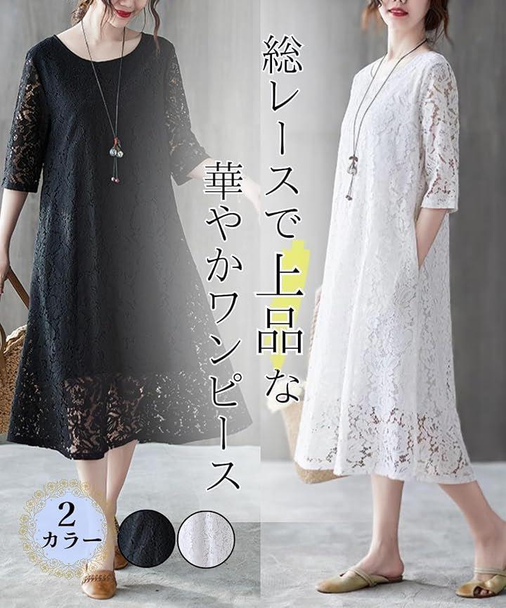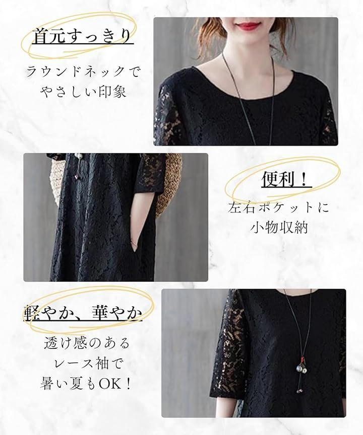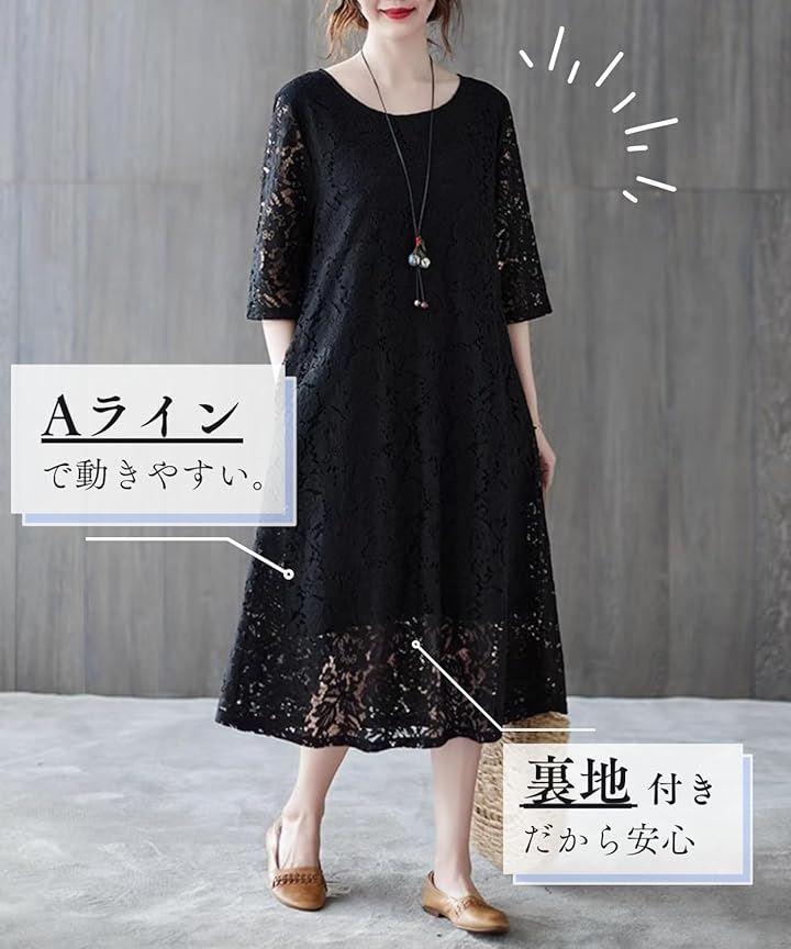 「快適な着心地と体型カバー」総レースのワンピースに裏地付きなので、透け感のあるレースがフェミニンな雰囲気を出しながらも下着うつりを気にせず着られます。