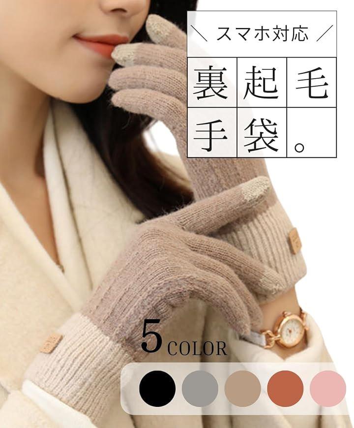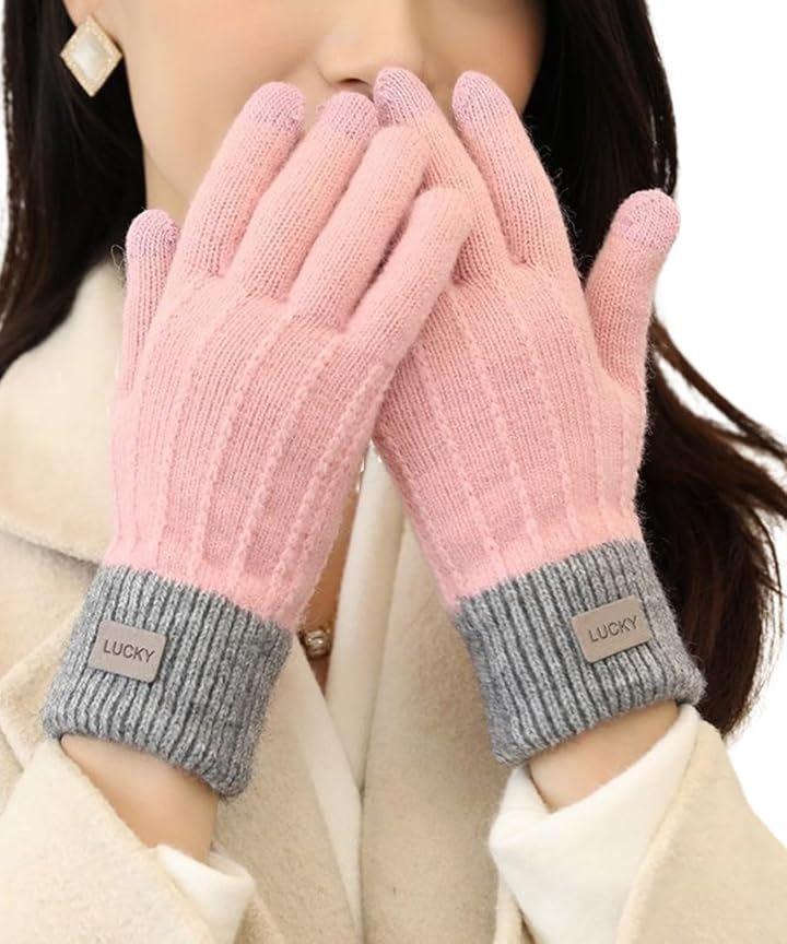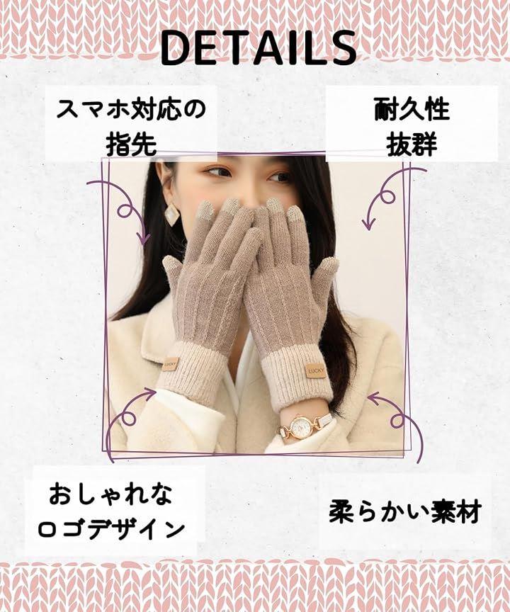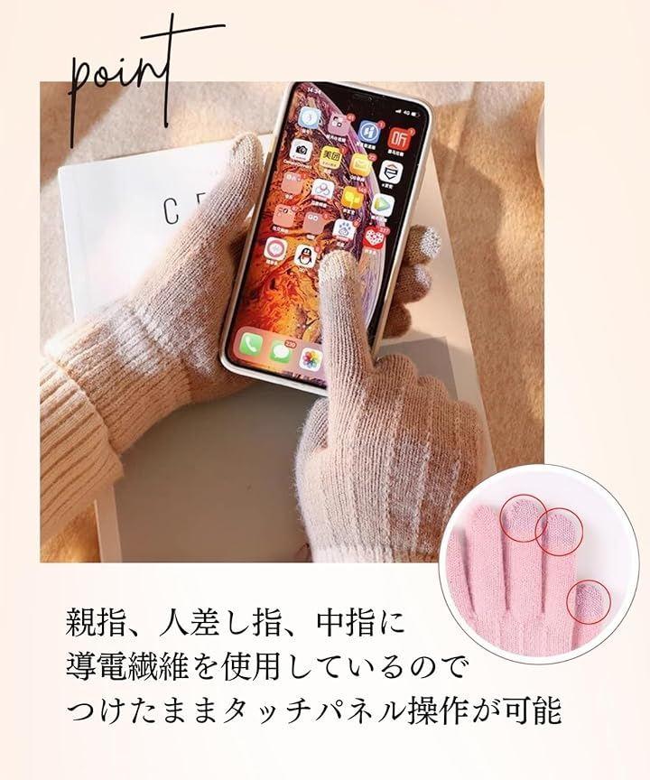 Elixio Gloves, Warm, Women's, Casual, Knit, Smartphone Compatible, Fleece Lining, Cold Protection, Windproof, Warm, Soft, Stretchy, Cute, Commuting, School, Bicycle, Motorcycle, Winter, Stylish