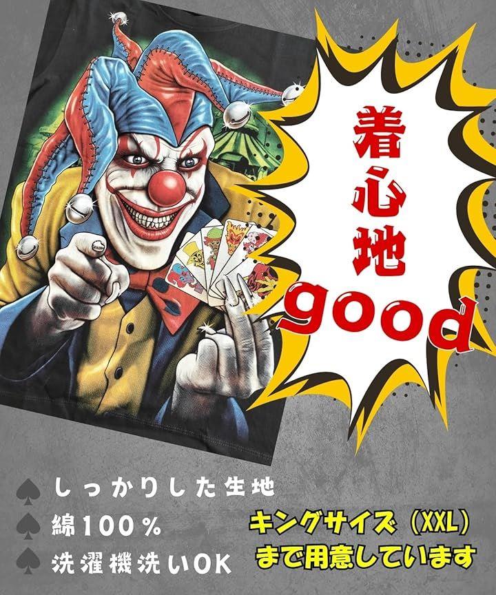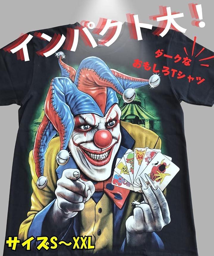 「イベントにも最適」 怖いピエロのビッグプリントが目を引くインパクト大のTシャツです。