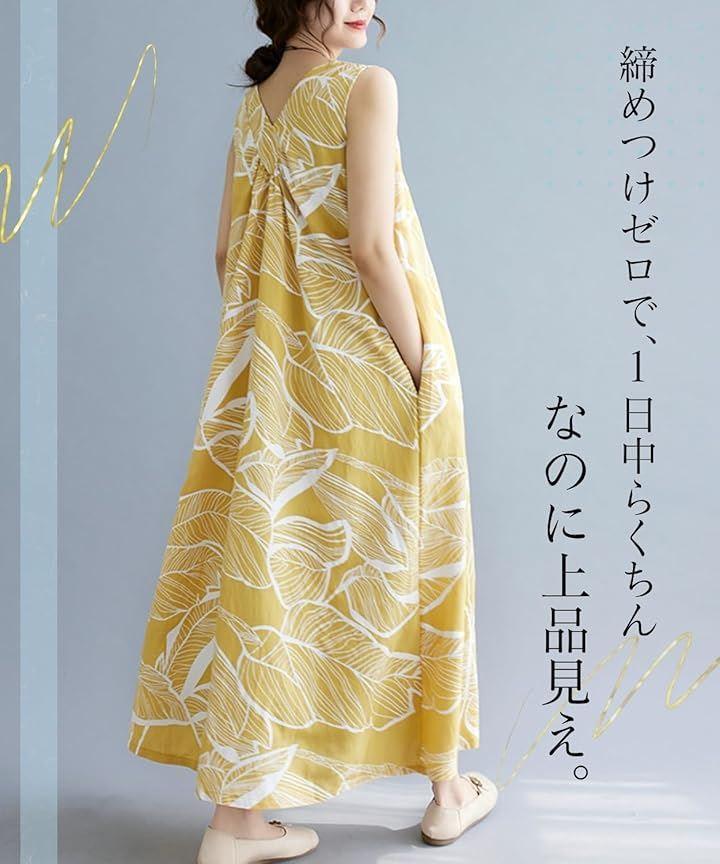 「爽やかで涼しい、夏にぴったりのデザイン」 ノースリーブで風通しの良いマキシ丈ワンピースで暑い季節も涼しく快適に過ごせます。