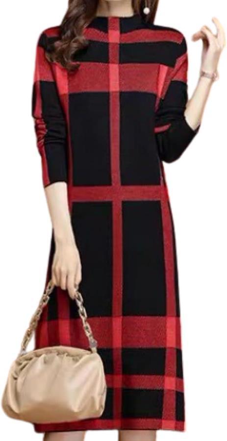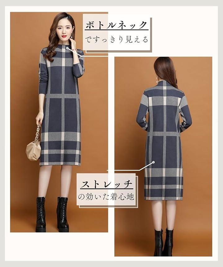 「あったか冬ワンピース」ニット生地で暖かく、冬に大活躍するチェック柄ワンピースです。