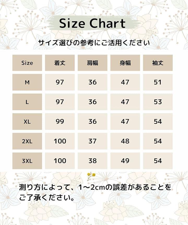 《M》着丈97/身幅47/肩幅36/袖丈51《L》着丈97/身幅47/肩幅36/袖丈53《XL》着丈99/身幅47/肩幅36/袖丈54《2XL》着丈100/身幅48/肩幅37/袖丈54《3XL》着丈100/身幅49/肩幅38/袖丈54