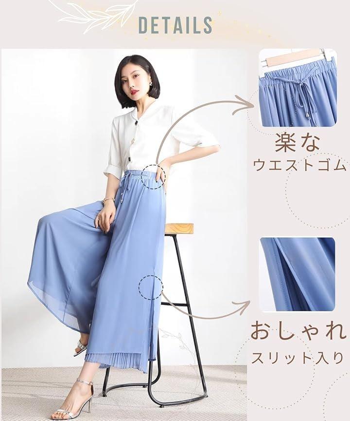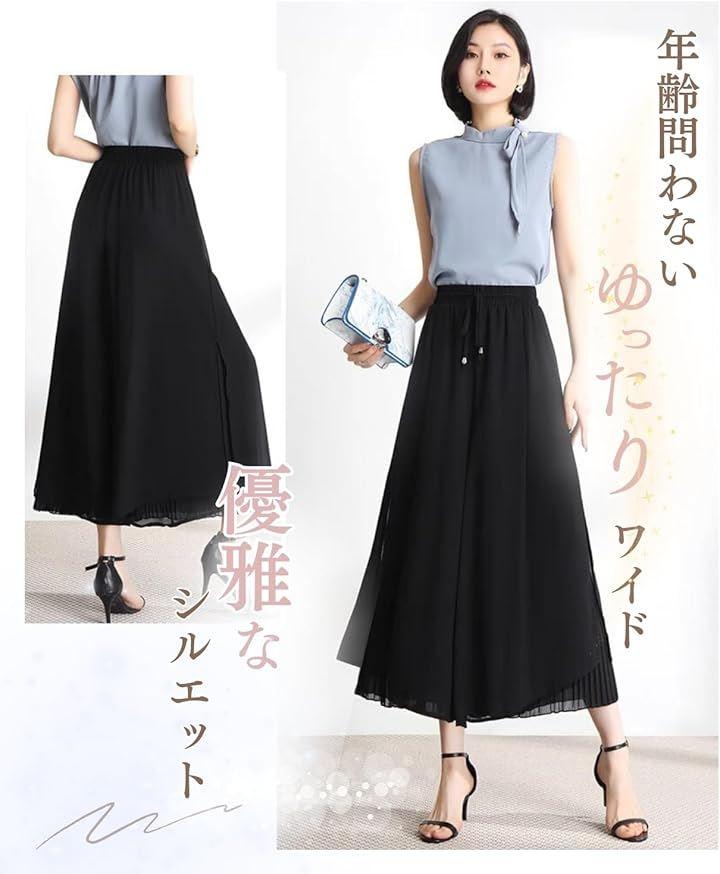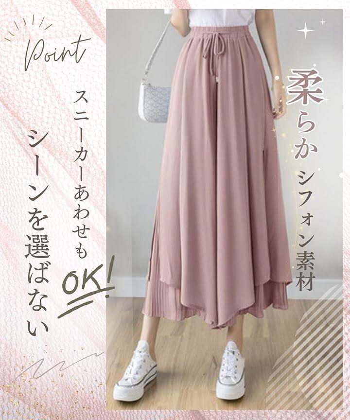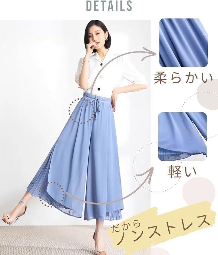 「デザイン」ふんわりとした高見えするシフォンの素材感で、上品な印象を与えるガウチョパンツです。