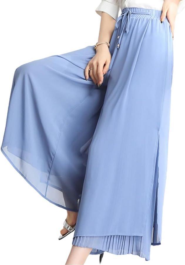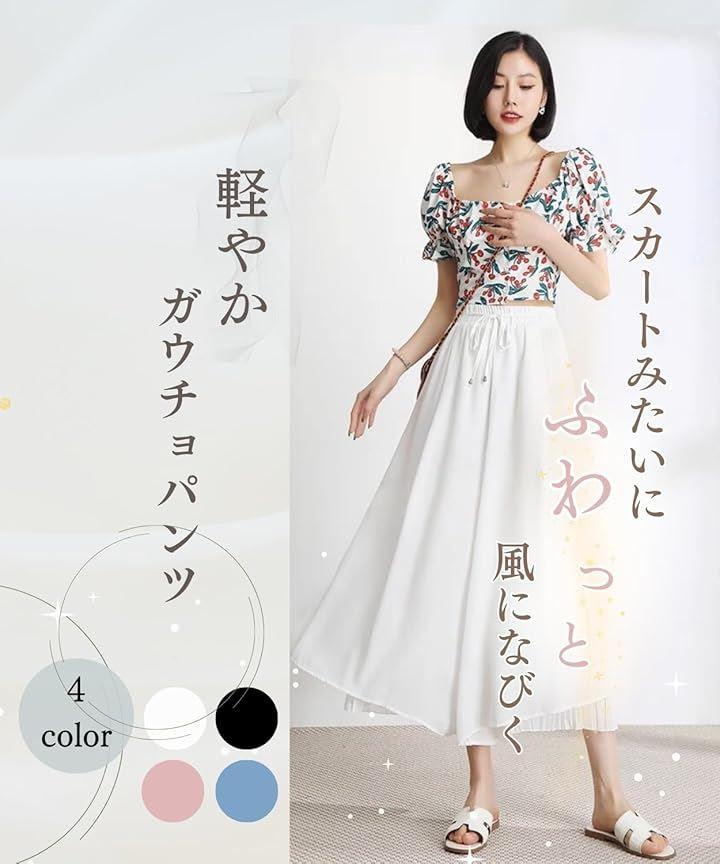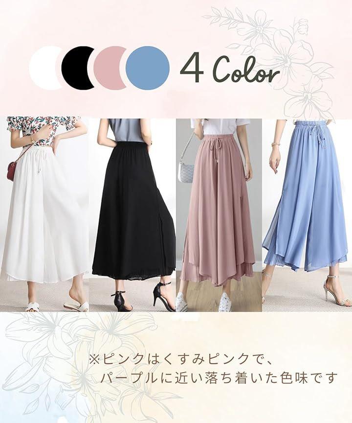 Elixio Women's Pants, Wide Pants, Gaucho Pants, Flared, Loose Fit, Thin, Stylish, Summer, Spring, Autumn, Office, Date, Large Size, Flared Pants, Chiffon, Commuting, Spring/Summer