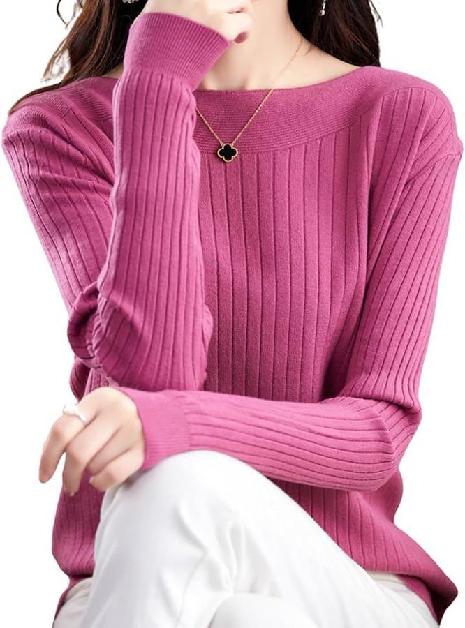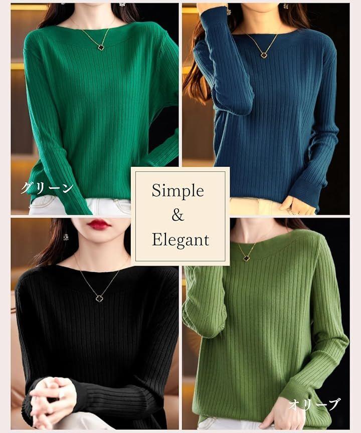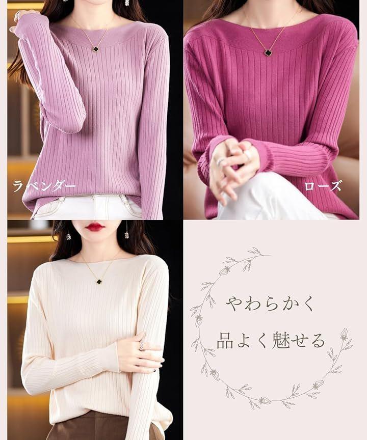 ロングスリーブで腕をすっきり見せ、ボートネックが顔まわりをきれいに見せてくれます。