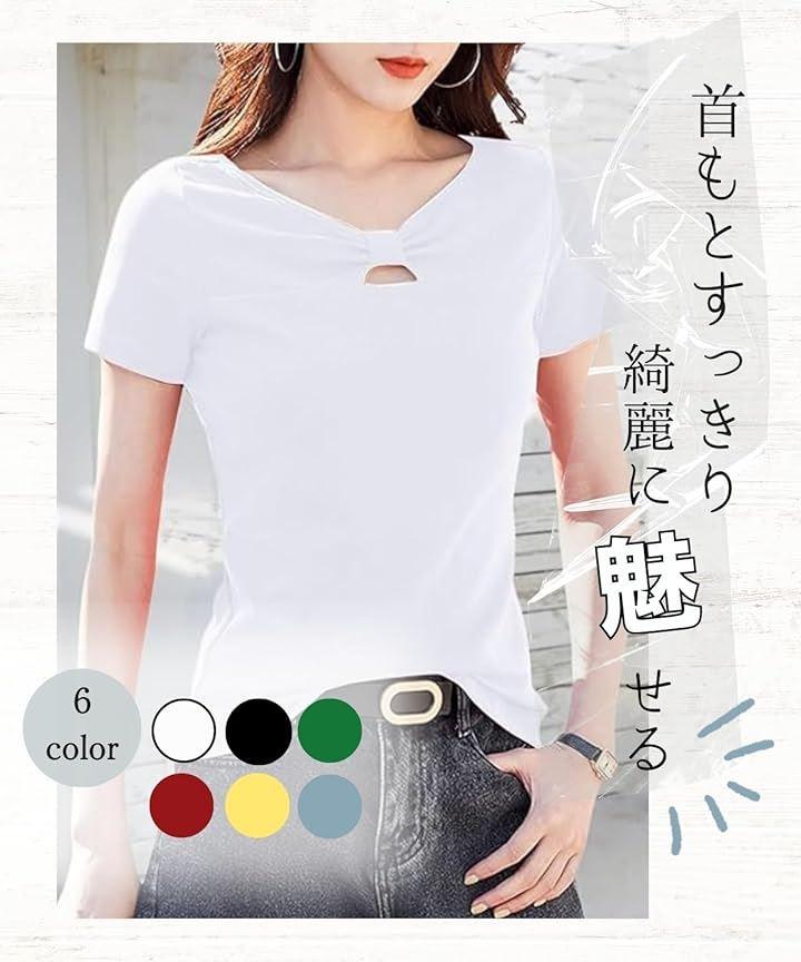 Vネックのカットソーは、首元を美しく見せるだけでなく、きれいめな印象を与えます。